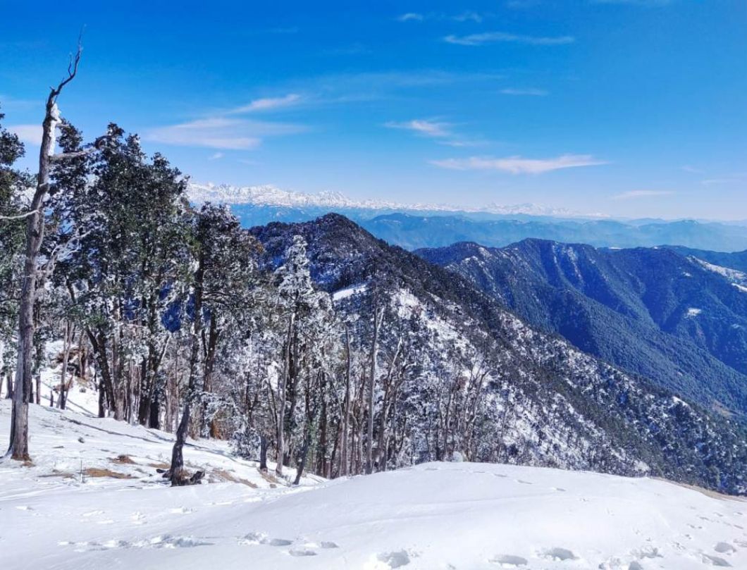 The Naag Tibba Trek (9,915 ft), also known as the “Serpent’s Peak”, is one of the best short treks in Uttarakhand. Just a few hours from Mussoorie and Dehradun, it offers stunning views of the Bandarpunch, Kedarnath, Gangotri, and Swargarohini peaks.